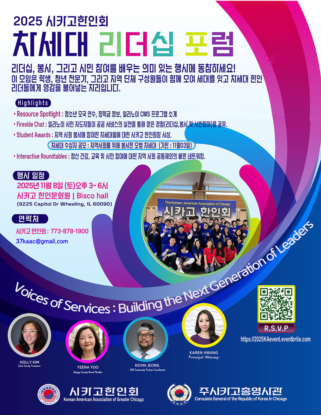Bisco Hall 9600 Capitol Drive, Wheeling일시 : 2025년 3월 1일 (토) 오후 5시 장소 : 시카고한인문화원 비스코홀 (https://bisco.kccoc.org)